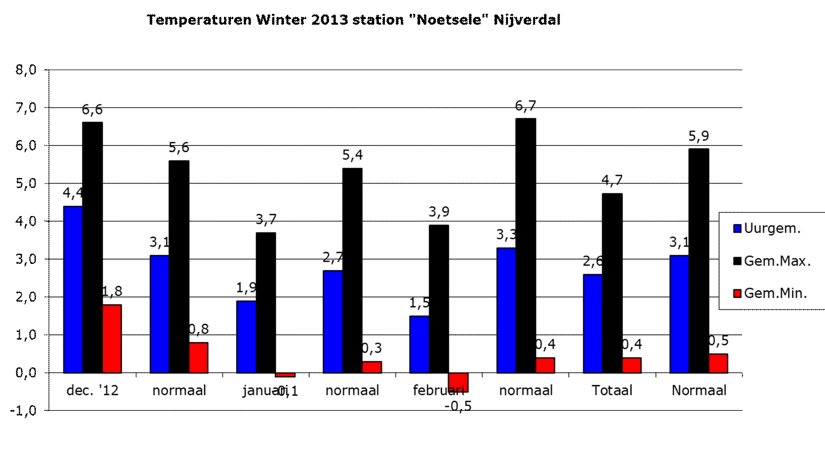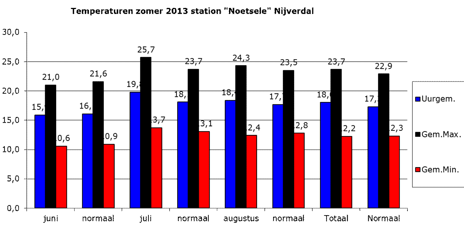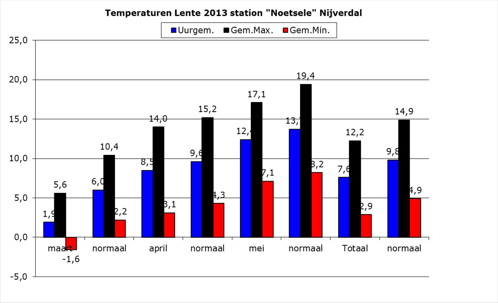 Overzicht Seizoenen weerstation “Noetsele” Nijverdal